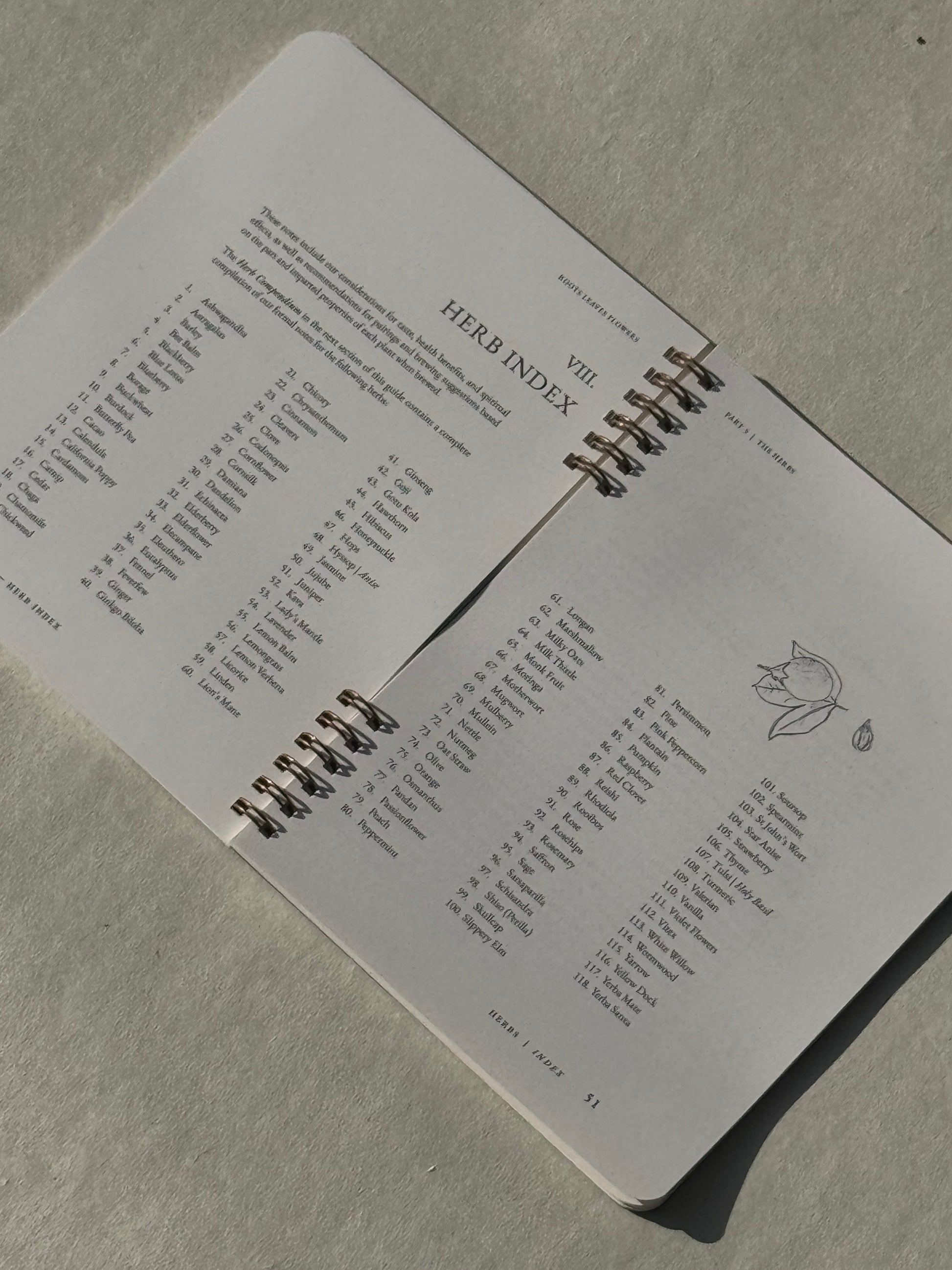 This edition has been updated with a blue cover and a new & improved wire binding system to allow for lay-flat note taking. We have also expanded our herbal compendium by welcoming 18 new herbal allies each offering their own stories of resilience, care, and relationship:
